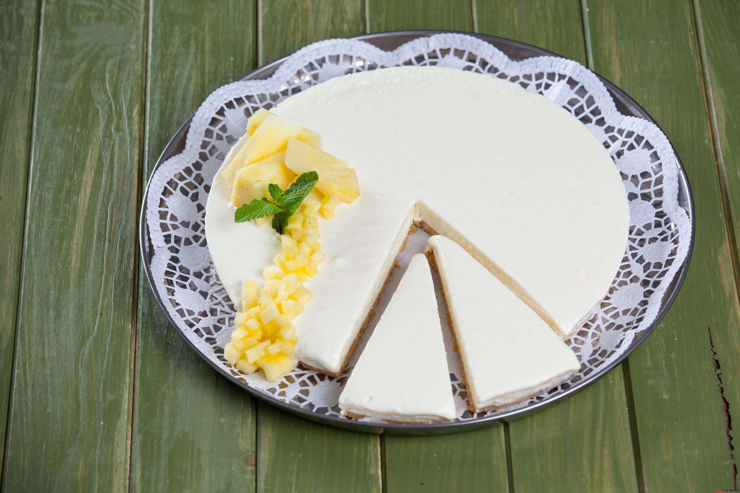 Instruções: 1. Para preparar esta receita de tarte de ananás, corte o ananás em pedaços. Reserve o ananás e a calda. Demolhe as folhas de gelatina em água. Depois aqueça um pouco da calda do ananás, junte as folhas de gelatina escorridas e dissolva-as na calda. Deixe arrefecer um pouco. Deite as natas para uma tigela e bata em chantilly bem firme, adicionando o leite condensado, aos poucos. 2. Junte uma parte dos pedaços de ananás e as folhas de gelatina dissolvidas, sem desligar a batedeira. 3. Numa forma de fundo amovível, disponha uma camada de palitos de la reine triturados. 4. Verta por cima o preparado das natas e cubra com outra camada de palitos triturados, como vê na foto. Leve ao frio a solidificar, desenforme e sirva decorado a gosto, por exemplo, com os restantes pedaços de ananás.