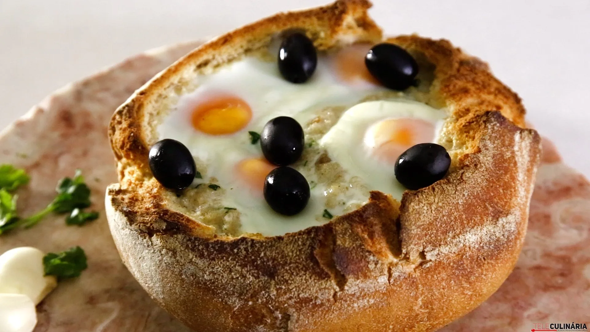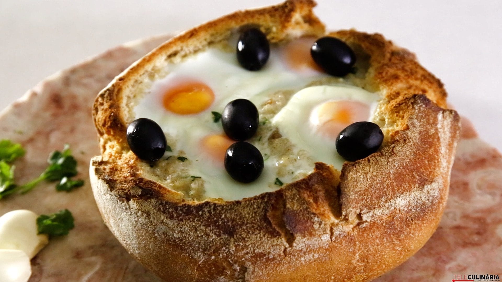 Instruções: 1. Corte o pão em pedaços, deite-os para uma tigela, regue com um pouco de água morna e tape. Retire a pela à farinheira e corte-a em pedacinhos. 2. Descasque a cebola e os dentes de alho, pique tudo, deite para um tacho, junte o azeite e a folha de louro, leve ao lume e deixe cozinhar até a cebola ficar macia. Adicione os tomates pelados picados e os pedaços de farinheira, misture e deixe cozinhar, em lume brando, durante 5 minutos. 3. Escorra o pão com as mãos, junte ao tacho, mexa até ficar uma mistura homogénea, rectifique o sal, adicione a salsa (ou coentros) e deite para um tabuleiro de louça ou pirex. Abra os ovos em cima, leve ao forno pré-aquecido a 180ºC até os ovos ficarem cozinhados a gosto, retire e sirva quente.