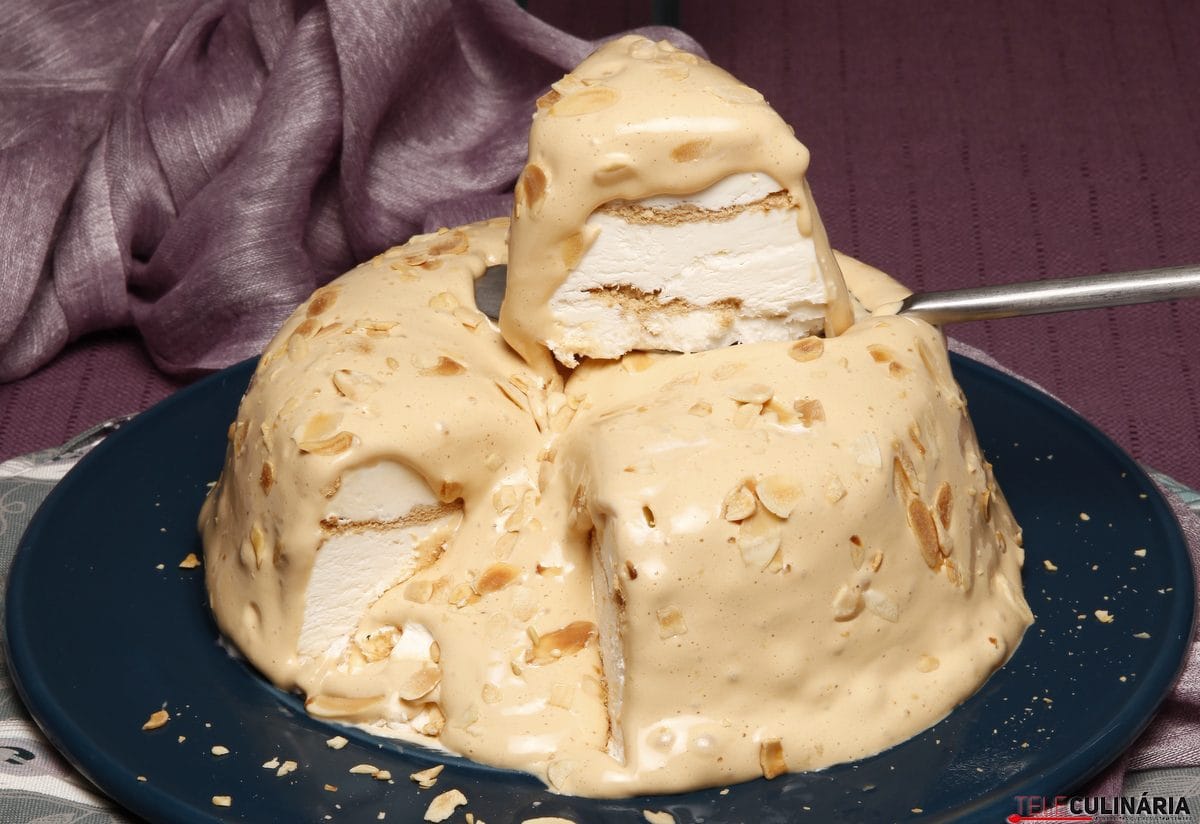 Instruções: 1. Triture as bolachas até ficarem tipo pão ralado. Bata as natas com o açúcar até ficarem em chantilly bem espesso. 2. Deite, para uma forma, camadas alternadas de chantilly e de bolacha, sendo que a última camada deve ser de chantilly. Leve ao congelador até ficar bem firme. Depois mergulhe o fundo da forma em água a ferver, desenforme para um prato largo e leve de novo ao congelador. 3. Deite o leite condensado cozido para uma tigela, junte as gemas e mexa bem. Bata as claras em castelo bem firme, adicione-as à mistura e envolva delicadamente. Deite sobre o pudim e sirva decorado a gosto, se quiser polvilhado com amêndoa laminada torrada.