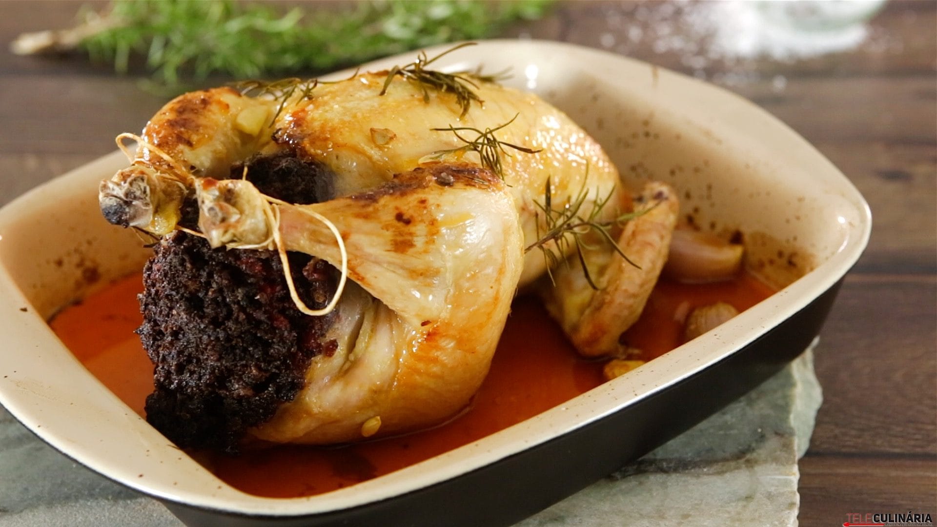 Frango recheado com enchidos