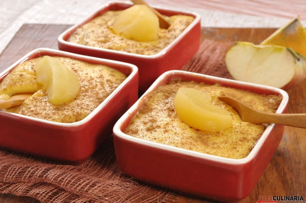 Instruções: 1. Descasque e lave as maçãs, corte-as em gomos, retire-lhes o caroços e leve-as a cozer em água com os paus de canela e as cascas de limão. Depois escorra, coloque num tabuleiro de louça grande ou vários pequenos e deixe arrefecer. 2. Deite o leite e metade do açúcar num tacho, mexa, leve ao lume e deixe aquecer. Numa tigela, junte o restante açúcar com a farinha maisena e mexa bem. Adicione depois as gemas e o vinho do porto e mexa muito bem. Junte então o leite em fio e mexendo sempre, verta no tacho e leve novamente ao lume, mexendo continuamente até engrossar mas sem deixar ferver. 3. Verta a mistura anterior sobre as maçãs e deixe arrefecer. Na hora de servir, polvilhe com canela em pó e decore a gosto.