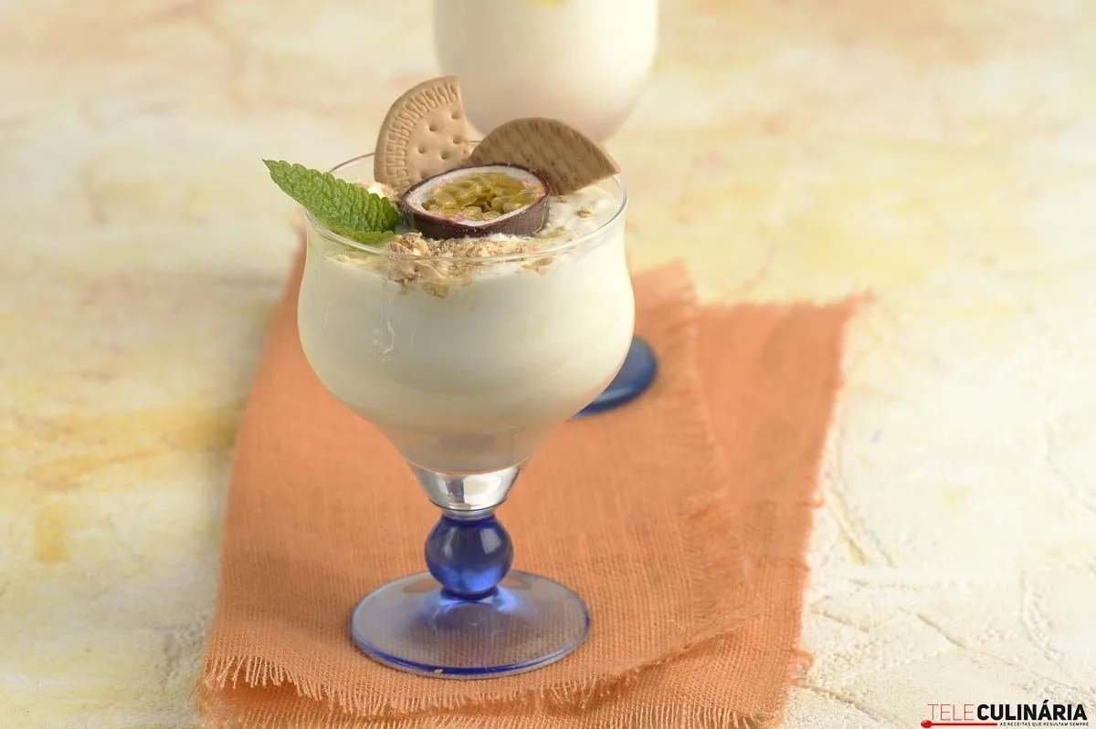 Instruções: 1. Deite a polpa de maracujá numa tigela, junte o leite condensado e misture bem. Reserve no frio. 2. Numa tigela à parte, bata as natas em chantilly bem firme e envolva-o suavemente no preparado anterior. 3. Deite em taças individuais e sirva decorado a gosto. Pode polvilhar com bolacha Maria picada.