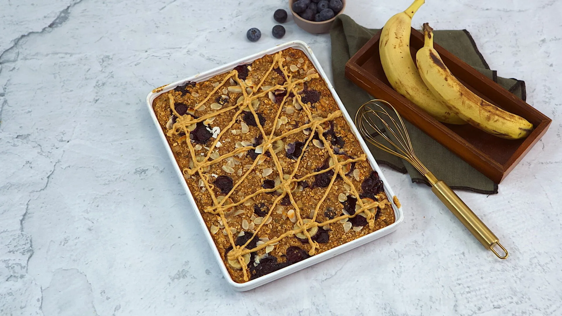 Quadrados de banana e mirtilos é a receita que trazemos hoje para si. Vai receber os amigos e não tem ideias para um lanche? Então a nossa sugestão é a ideal!