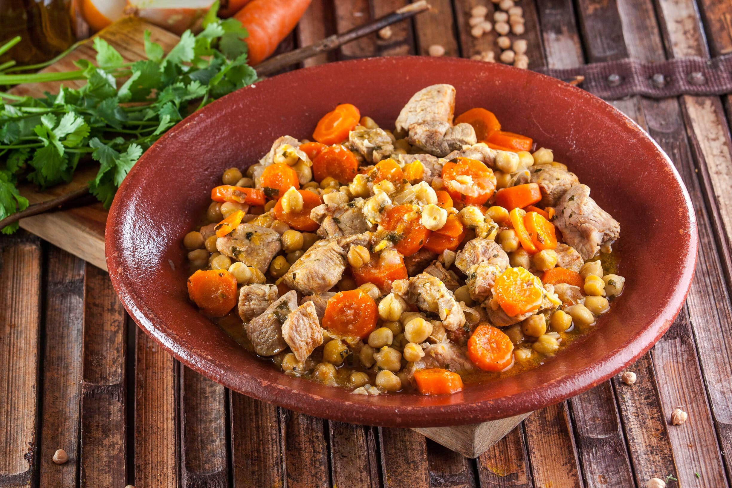 Porco com grão: Este é um prato mais robusto, onde o grão-de-bico se mistura com carne de porco, geralmente estufada ou assada, absorvendo os sabores ricos do molho de carne. É um prato reconfortante que combina bem com os meses mais frios.