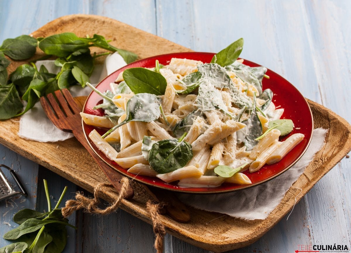 5. Massa com espinafres e molho de iogurte grego