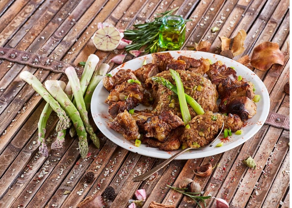3. Migas de espargos com entrecosto frito
