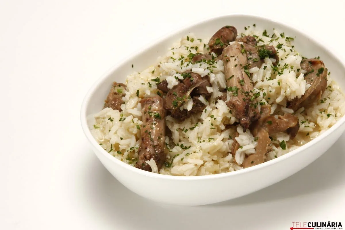 Receita de Arroz de miúdos - receita tradicional. Descubra como cozinhar a receita de Arroz de miúdos - receita tradicional de maneira prática e deliciosa com a Teleculinária!