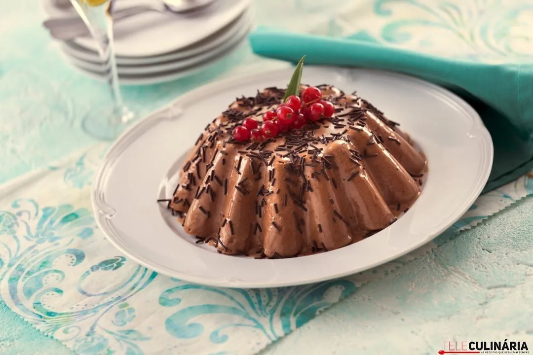 Coloque numa forma de pudim e leve ao frio até solidificar. Na hora de servir, desenforme cuidadosamente e polvilhe com chocolate granulado.