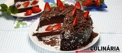Receita de Bolo de chocolate com natas e morangos. Descubra como cozinhar a receita de Bolo de chocolate com natas e morangos de maneira prática e deliciosa com a Teleculinária!
