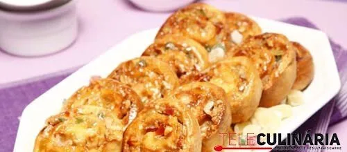 Ligue o forno a 190°C e forre um tabuleiro de forno com papel vegetal. Estenda a massa polvilhada com farinha em forma de rectângulo com 30 x 23 cm, barre depois com o creme de manteiga que preparou e espalhe a mistura da fruta por cima, deixando uma margem de 1 cm em cada lado da massa. Enrole como uma torta, corte depois em 12 rodelas, disponha-as no tabuleiro e leve ao forno durante 30 minutos. Retire, deixe arrefecer um pouco, pincele com geleia de marmelo e sirva.