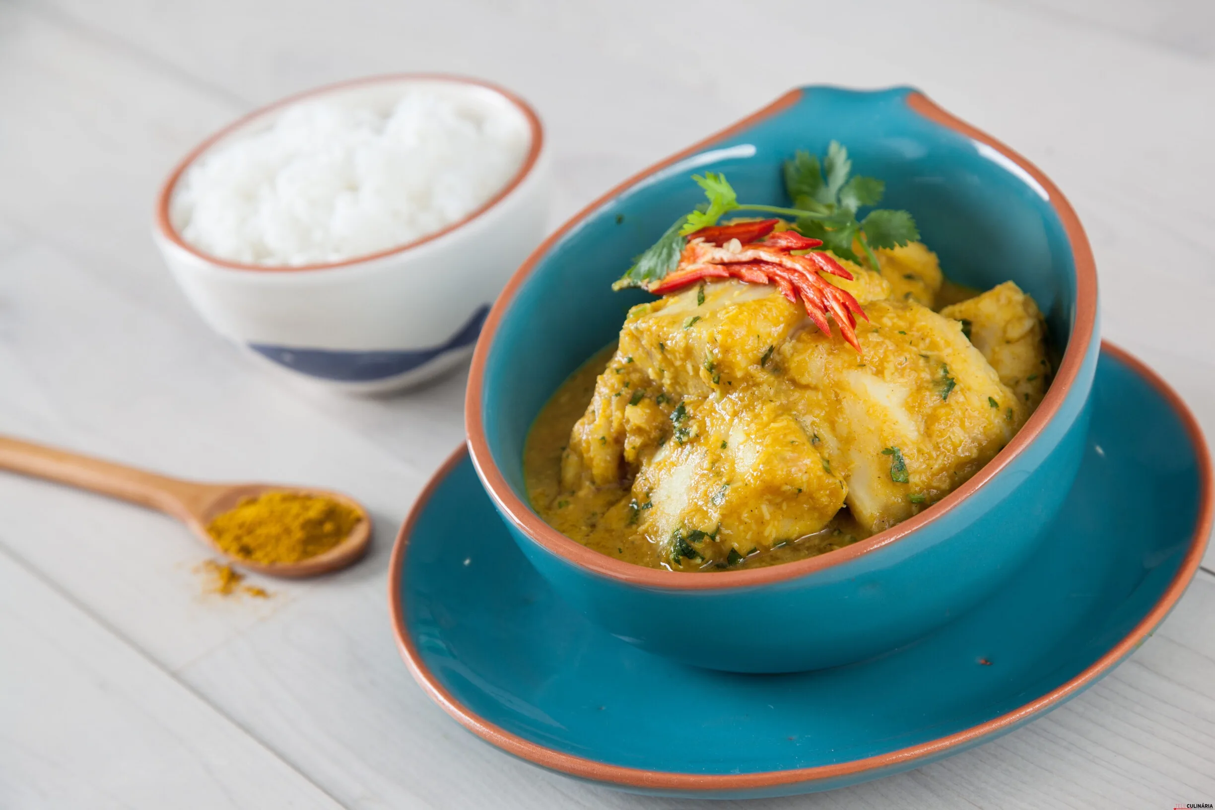Retire do lume, triture tudo muito bem e coloque novamente ao lume. Junte os medalhões de pescada e deixe cozinhar durante 20 minutos. Por fim, adicione o coco e retifique os temperos. Retire do lume e sirva polvilhado com coentros e decorado a gosto.