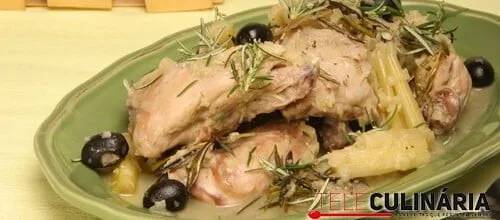 Receita de Coelho estufado com aipo e azeitonas. Descubra como cozinhar a receita de Coelho estufado com aipo e azeitonas de maneira prática e deliciosa com a Teleculinária!
