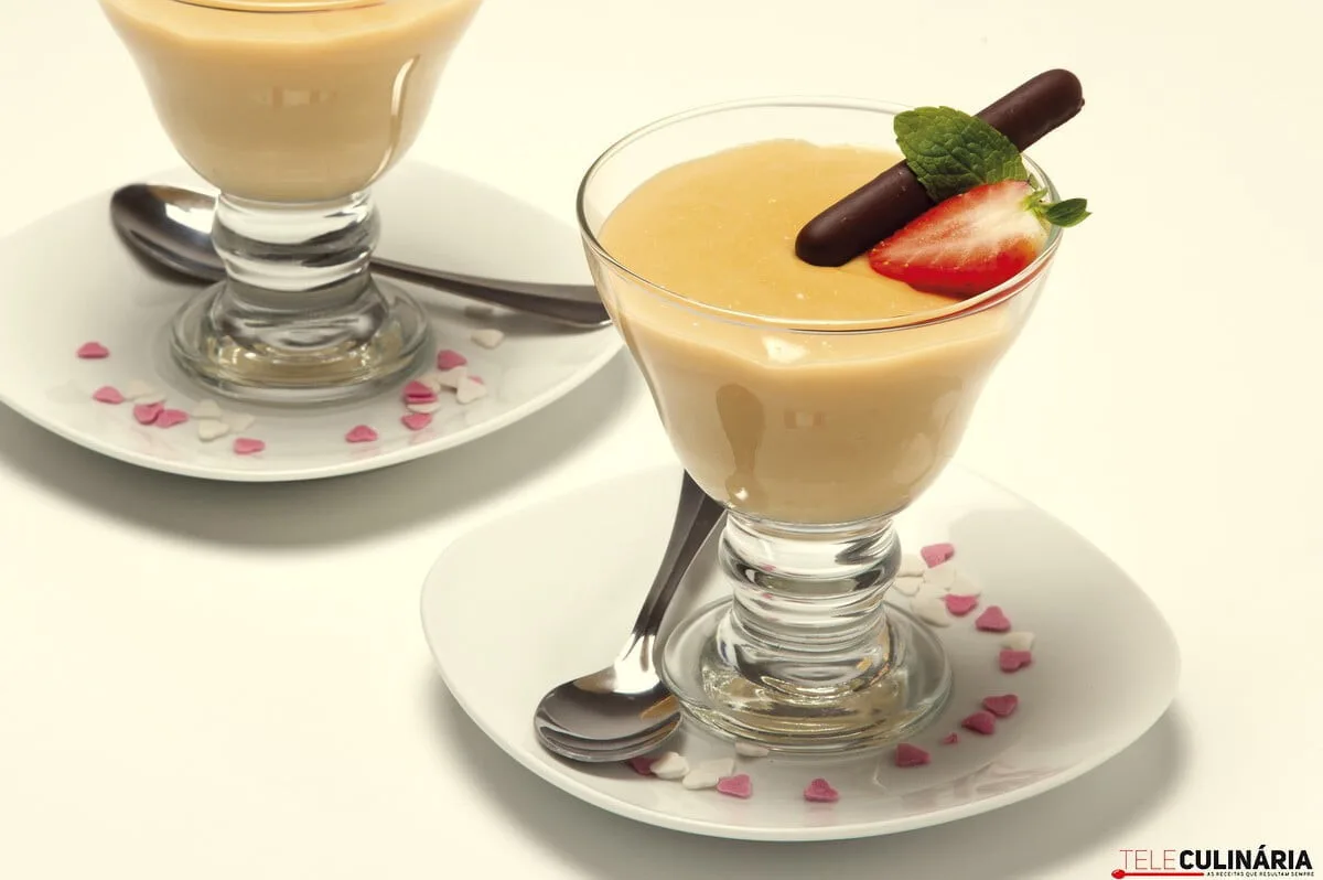 Verta para taças individuais, deixe arrefecer e sirva decorado a gosto, por exemplo com biscoitos de chocolate e morangos.