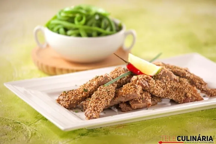 Receita de Tiras da vazia panadas em sementes de sésamo. Descubra como cozinhar a receita de Tiras da vazia panadas em sementes de sésamo de maneira prática e deliciosa com a Teleculinária!